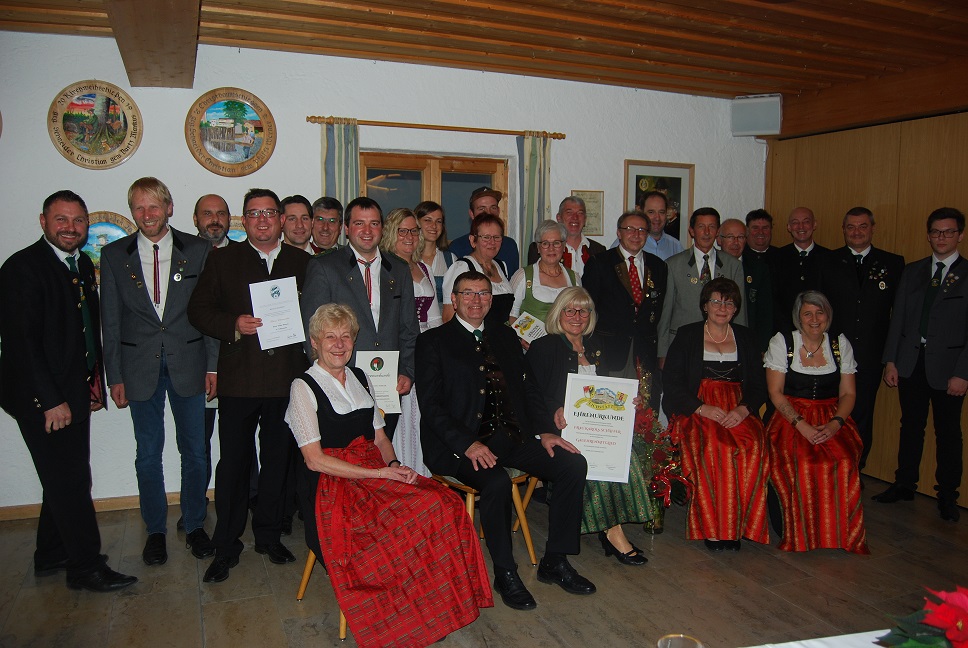 Die Ehrenzeichen des Schützengau Eichstätt können nur an langjährige Gauverwaltungsmitglieder und Schützenmeister verliehen werden. Das Ehrenzeichen in Silber ist dem Gau-Pistolenreferenten Andreas Ostertag (SV Hubertus Pietenfeld) und der stellvertretenden Schützenmeisterin Walburga Mirbeth vom SV Felsentor Oberemmendorf verliehen worden. Mit dem Gauehrenzeichen in Gold wurden vier ehemalige Schützenmeister geehrt. Josef Wenzl (Edelweiß Gammersfeld), Thomas Günthner (SV Schuttertal Meilenhofen/Zell), Werner Ruppert (SV Jurahöhe Rupertsbuch) und Mathias Schneider (SV Jurahöhe Pfahldorf) nahmen aus der Hand der stellvertretenden Gauschützenmeister Markus Nerb und Florian Bauer diese Ehrenzeichen entgegen.
