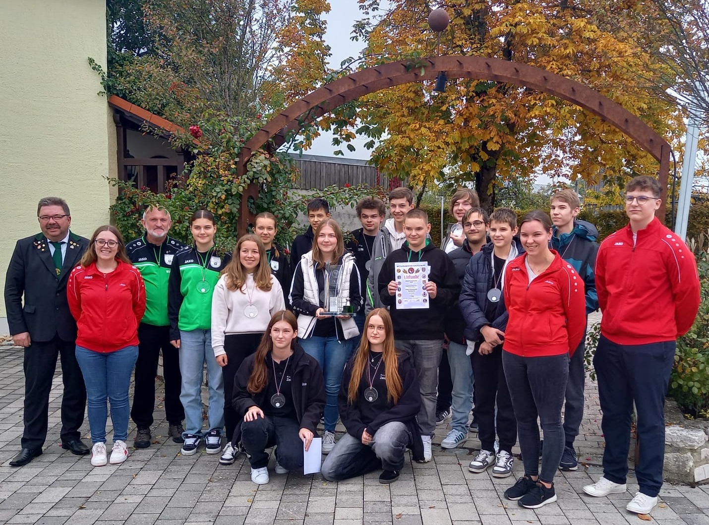 (Foto: MSB) Die erfolgreichen Medaillengewinnerinnen und -gewinner aus den Gauen mit der Bezirksjugendleitung