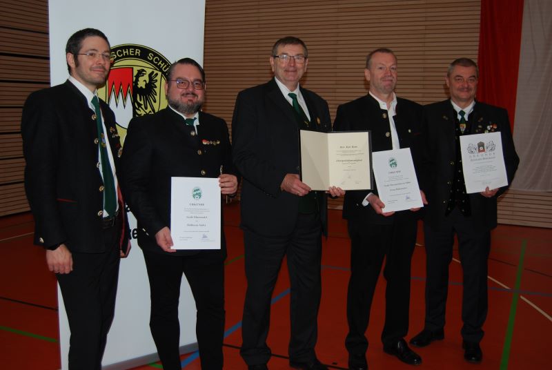 Der Mittelfränkische Schützenbund veranstaltete seine 72. Delegiertentagung im Tagungszentrum Onoldia in Ansbach. Mehr als 55000 Mitglieder in zwölf Gauen sind im Schützenbezirk Mittelfranken organisiert. Für vier Schützen aus dem Schützengau Eichstätt war dies eine besondere Kulisse für eine erhaltene hohe Ehrung. Die Auszeichnungen wurden ihnen vom 1. Landesschützenmeister des Bayerischen Sportschützenbundes Christian Kühn verliehen.
