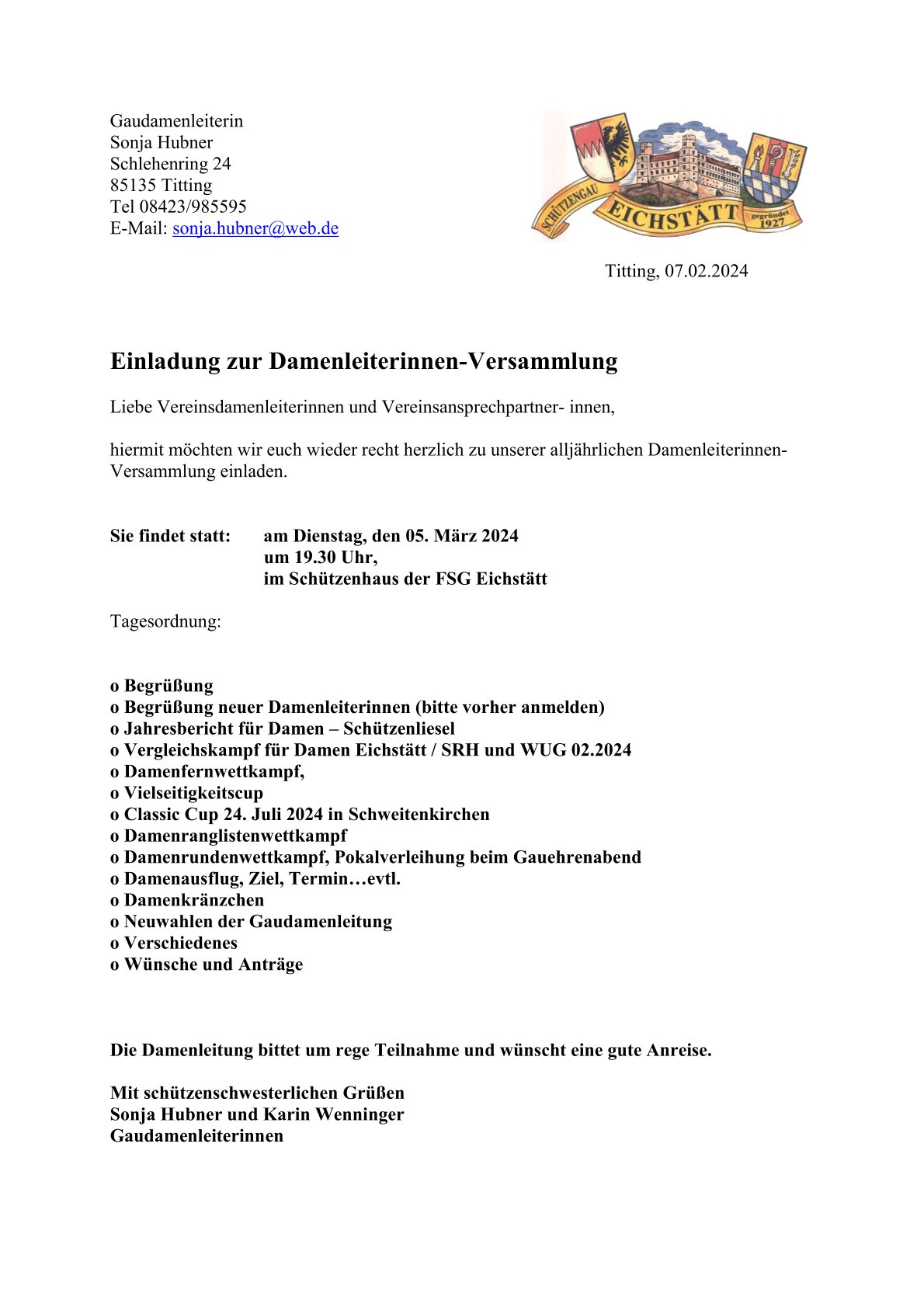 Einladung zur Damenleiterinnen-Versammlung